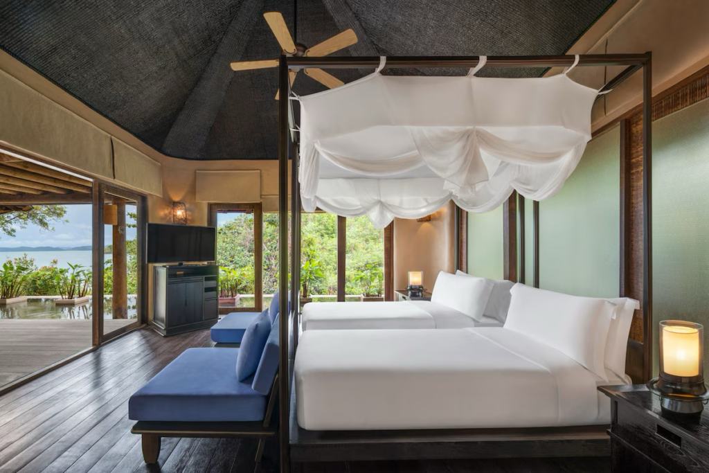 The Naka Island, a Luxury Collection Resort & Spa, is set on a private island just off the coast of Phuket, making it the ultimate destination for privacy and exclusivity. The resort’s villas are designed to blend with the natural surroundings, offering panoramic views of the turquoise waters and lush greenery. The design focuses on creating intimate, personal spaces where guests can unwind away from the world.