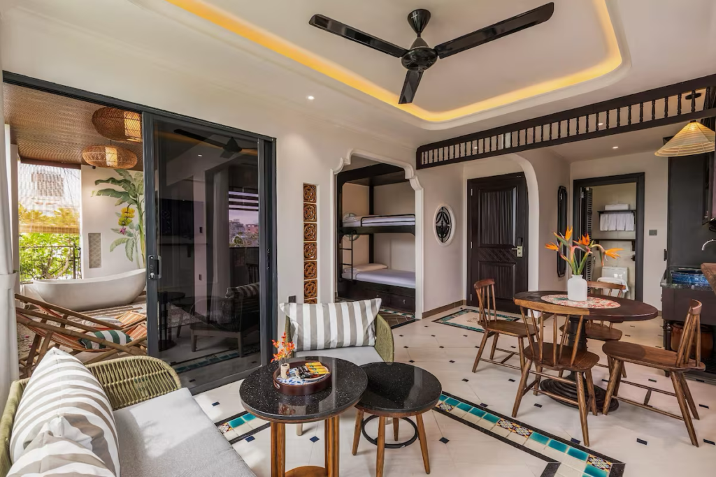 The hotel’s design focuses on creating a sense of openness. Whether you’re relaxing by the pool or enjoying a meal in the dining area, you’re constantly reminded of the beach’s proximity, yet the space remains calm and restorative. Golden Lotus offers a laid-back atmosphere, with the perfect balance of accessibility and seclusion.