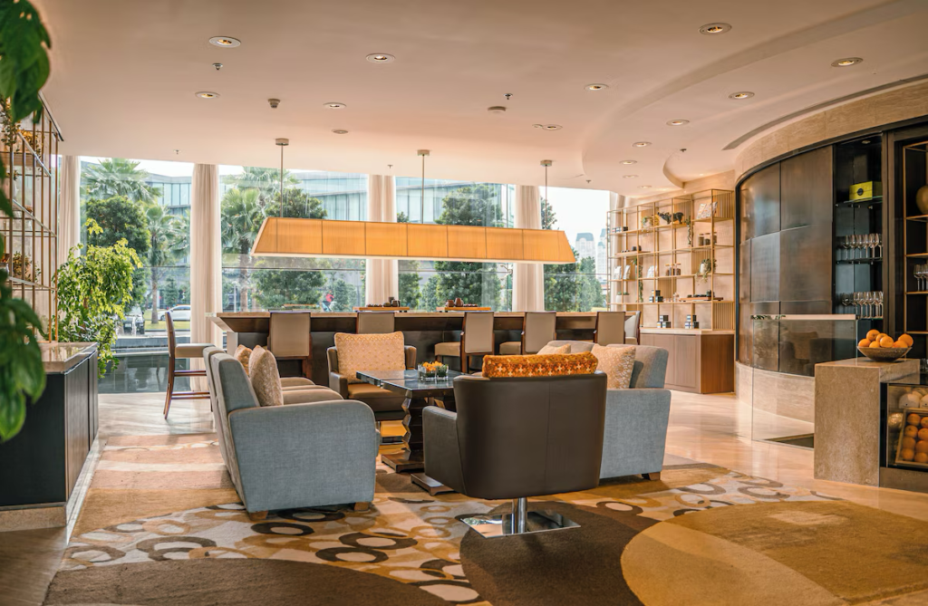 The design of the hotel is modern and sleek, with spacious rooms that offer panoramic views of the surrounding area. Despite its modernity, the hotel maintains an atmosphere of calm and restraint, with muted tones and luxurious finishes. The public spaces are carefully designed to allow for easy movement while remaining visually peaceful. The hotel’s quiet location provides guests with a restful stay, while still being within reach of Hanoi’s main attractions.