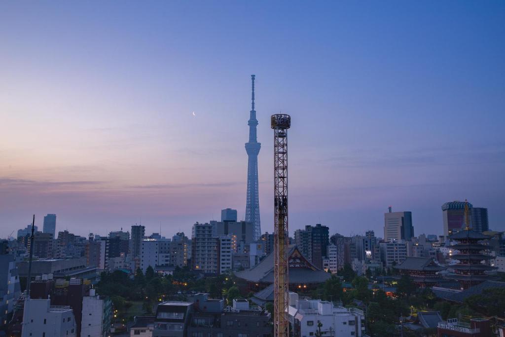 Positioned above the streets of Asakusa, The Gate Hotel Kaminarimon by Hulic offers an elevated perspective on one of Tokyo’s most visited neighbourhoods. Its upper-floor setting allows rooms and common areas to open toward views of the Sumida River, Tokyo Skytree, and surrounding rooftops, creating a sense of openness rarely found at street level.