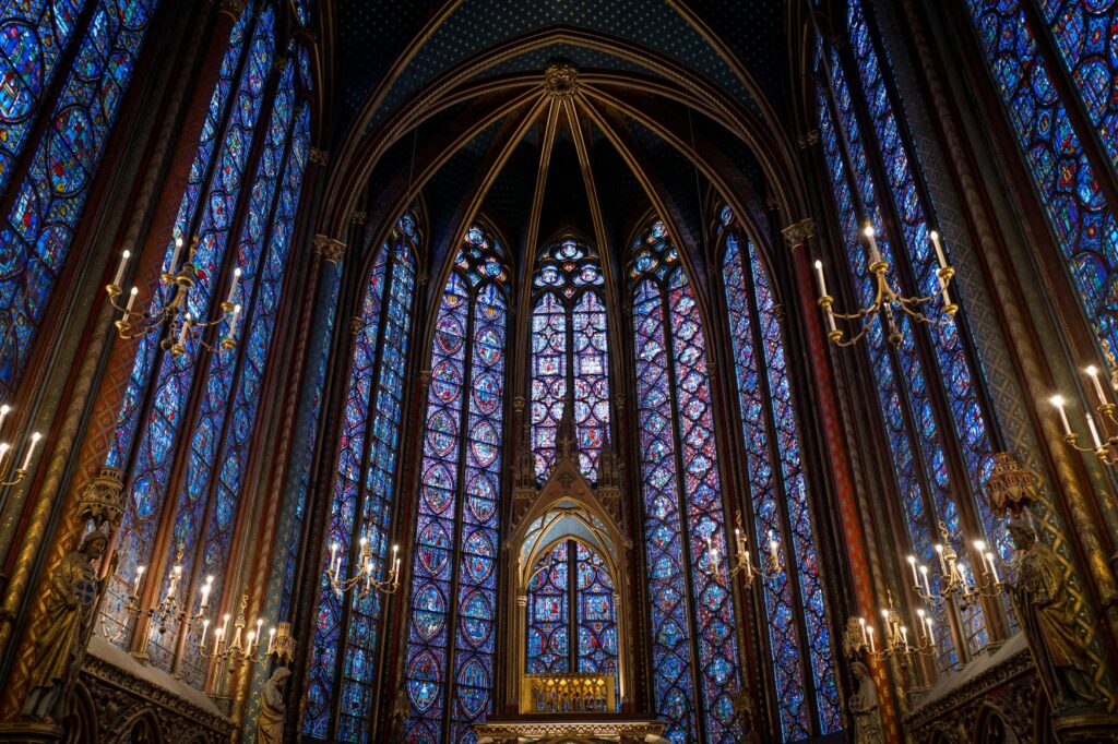 The Sainte-Chapelle is a Gothic chapel located on Île de la Cité, near Notre-Dame Cathedral. Its stunning stained-glass windows are some of the most magnificent in the world, telling biblical stories in vivid color. Visiting the Sainte-Chapelle is like stepping into a dreamscape, where the sunlight filters through the glass and illuminates the chapel in an ethereal glow.